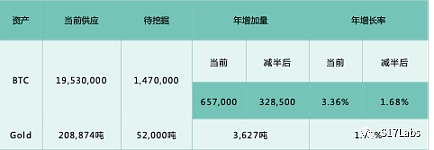 比特币和黄金当前总量和通胀等情况 / 数据:世界黄金协会,美国地质调查局